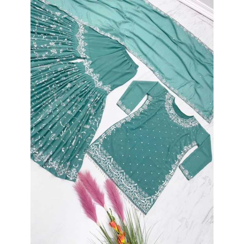 Added new colours *Ready to wear* -3 piece set (kurti+Plazzo+dupatta) designer sharara suit